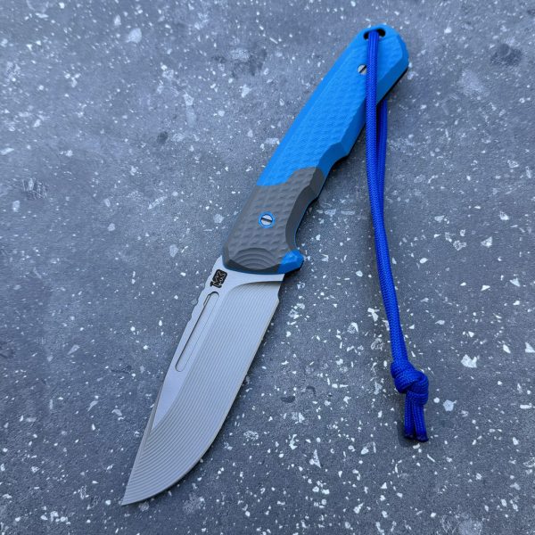 - Handle: blue G10 + grey inserts + black liners