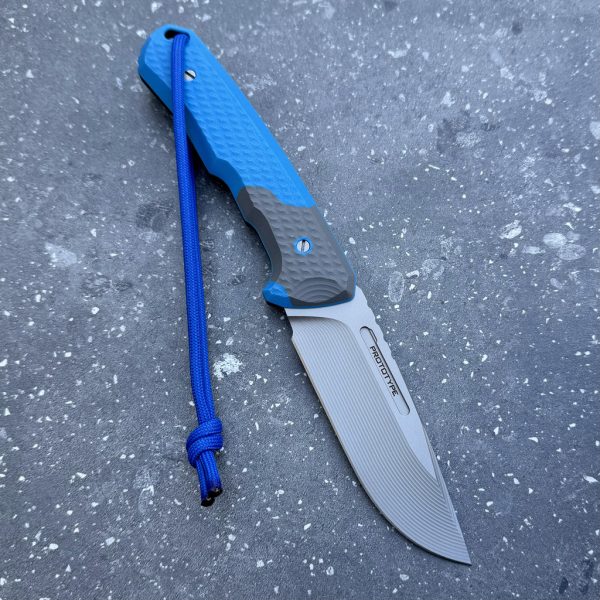 MK Knives & Tools Venn PROTOTYPE 10th Anniversary Logo Glass Blasted Elmax Blue/Grey G10 Grey Kydex