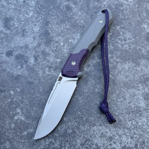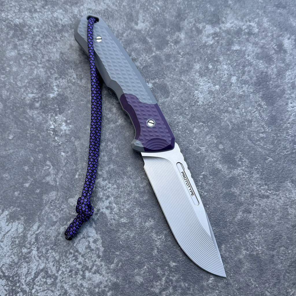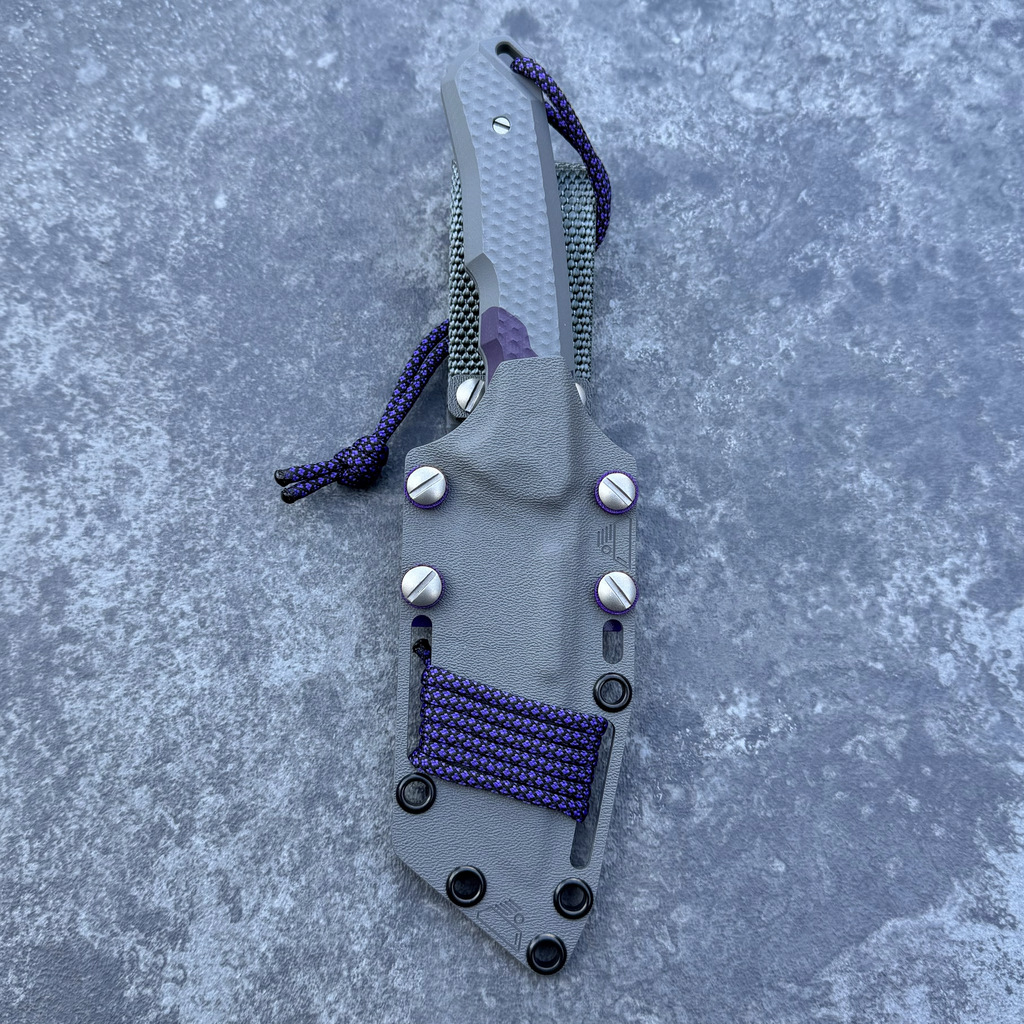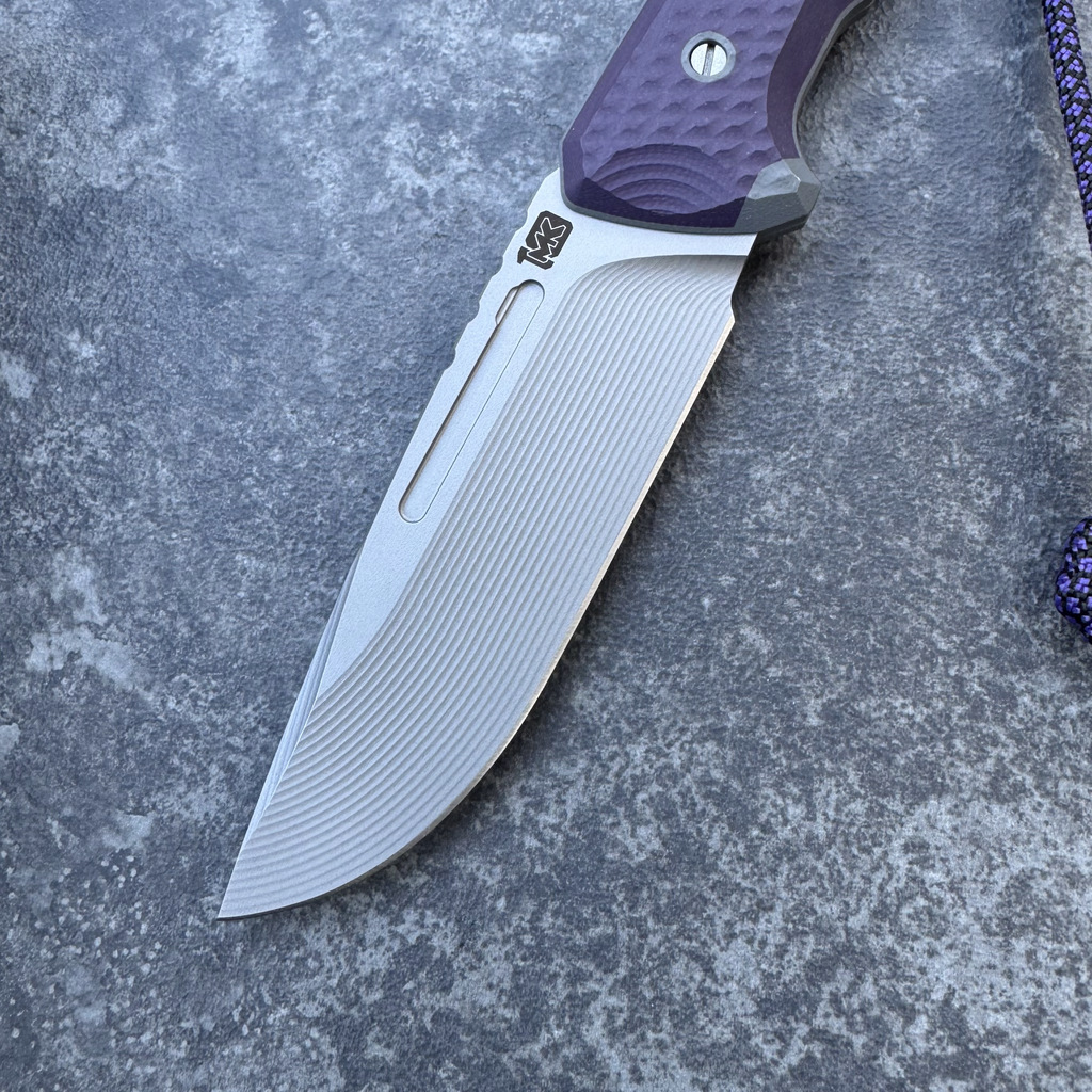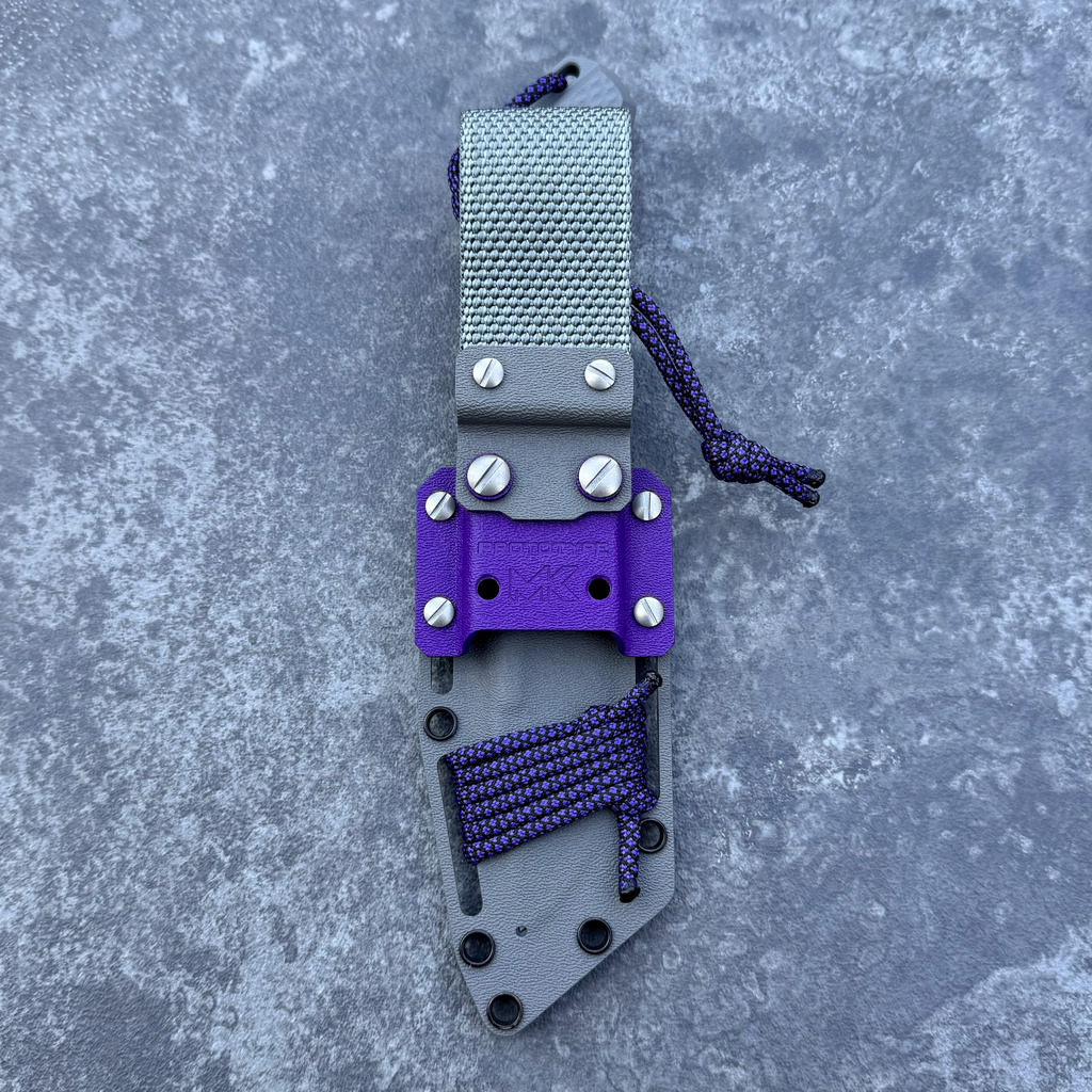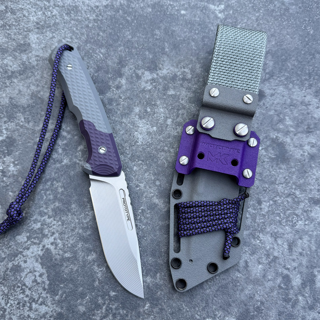 MK Knives & Tools Venn PROTOTYPE 10th Anniversary Logo Glass Blasted Elmax Charcoal Grey/Royal Purple G10 Grey Kydex