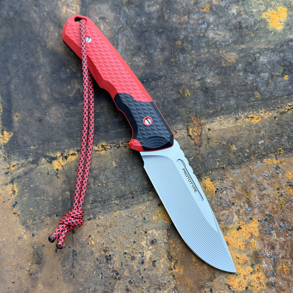 MK Knives & Tools Venn PROTOTYPE 10th Anniversary Logo Glass Blasted Elmax Red/Black G10 Black Kydex