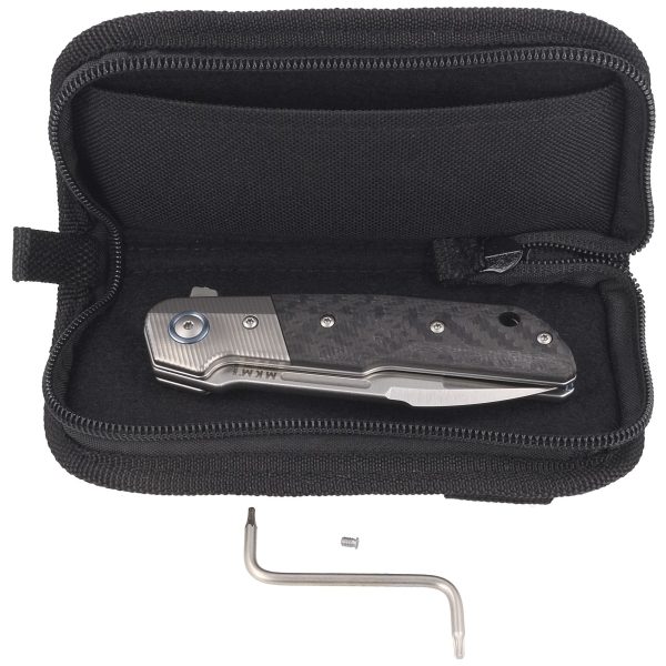 Nóż składany MKM Clap Carbon Fiber, Satin M390 by Bob Terzuola (MK LS01-CT) – solidny nóż typu gentleman’s folder z unikalnym designem autorstwa Boba Terzuoli. To wyjątkowe narzędzie, które łączy w sobie doskonałą ergonomię i najlepsze materiały, takie jak włókno węglowe (Carbon Fiber), tytan i stal M390. Ten niewielki nóż doskonale sprawdza się jako podręczne narzędzie i cieszy się ogromnym zainteresowaniem.