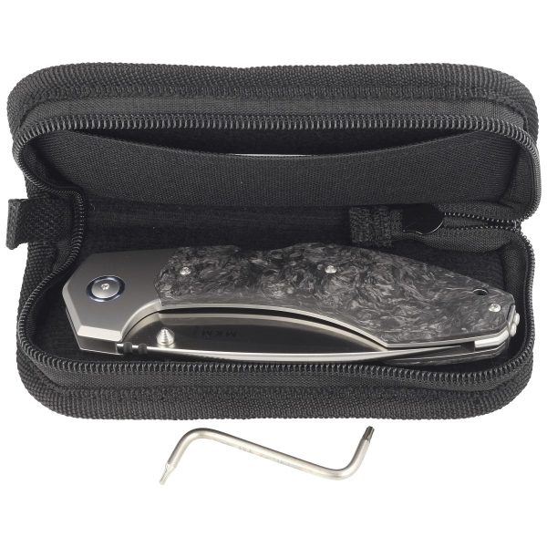 W zestawie znajduje się miękkie etui z nylonu zapinane na zamek, ozdobione logo producenta. Jest to doskonałe etui do bezpiecznego przechowywania i transportowania noża Hero Marbled Carbon Fiber, Satin.