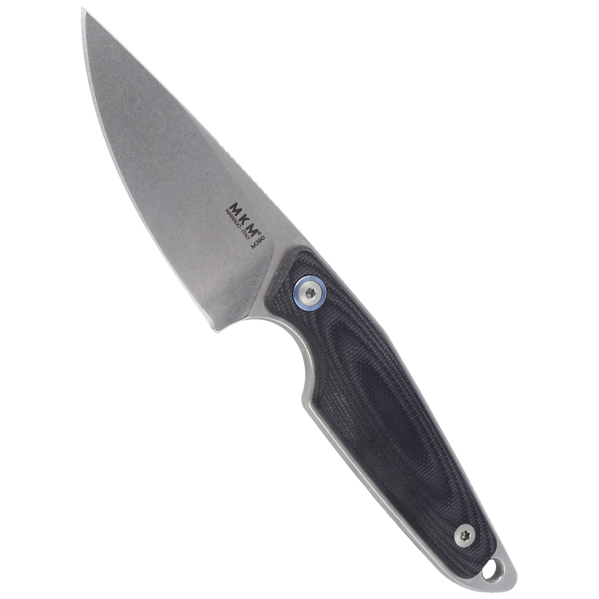 Nóż MKM Makro 1 Black G10, Stonewash M390 by Voxnæs (MKMA01-GBK) – niesamowicie poręczny i lekki nóż E.D.C. (Everyday Carry) ważący zaledwie 66 g, z solidną stałą klingą. Ten niezwykle wszechstronny nóż charakteryzuje się mocnym ostrzem z zaokrągloną krawędzią tnącą, idealnym do samoobrony i drobnych prac. Projekt pochodzi od duńskiego knifemakera, Jespera Voxnaesa.