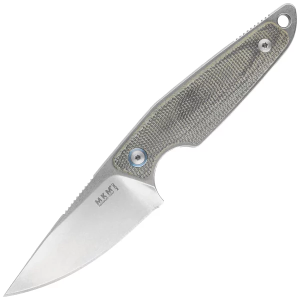Nóż MKM Makro 1 Green Canvas Micarta, Stone Washed by Voxnæs (MKMA01-GC) – wyjątkowy nóż o designie autorstwa Jespera Voxnæsa. To niesamowicie lekki nóż, ważący zaledwie 66 g, wykonany z jednego kawałka doskonałej stali narzędziowej M390. Jest idealnym narzędziem zarówno do codziennego noszenia w mieście (EDC), jak i do zastosowań terenowych, pochodzący od włoskiej marki MKM. Komfortowa rękojeść z Micarty i ostra jak brzytwa, krótka, mocna klinga z zaokrągloną krawędzią tnącą sprawiają, że ten nóż wyróżnia się na rynku.
