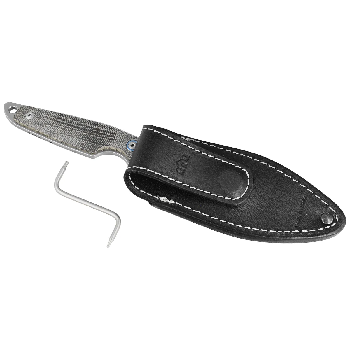 Duży nacisk został położony na łatwość przenoszenia i wyjmowania noża w przypadku pochwy. Płaska, lekka kabura została wykonana z naturalnej, wysokiej jakości skóry. Innowacyjne mocowanie przy użyciu magnesów umożliwia różne sposoby mocowania pochwy do pasa, krawędzi kieszeni lub oporządzenia.