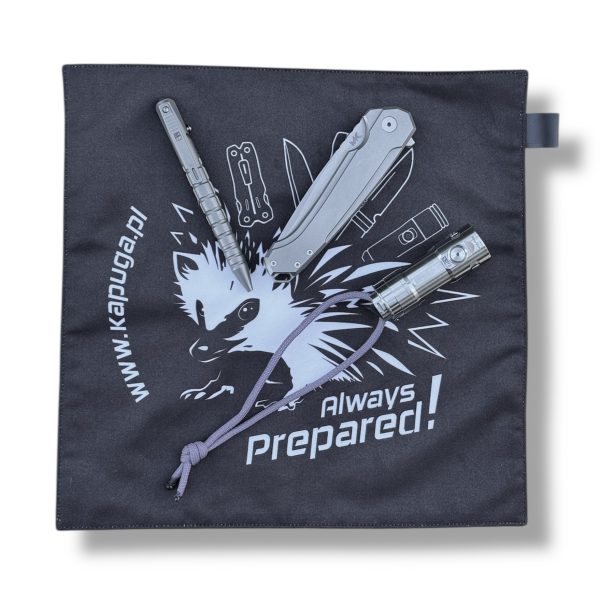 Mr. Mruk EDC Hankie “Wanderer’s Foot / EDC Hedgehog” 270 x 270 mm. A practical everyday cloth dedicated to EDC (EveryDay Carry) fans and anyone who appreciates unique designs, stylish accessories, and functional gadgets. This EDC cloth is a versatile everyday essential and a creative touch for your outfit.