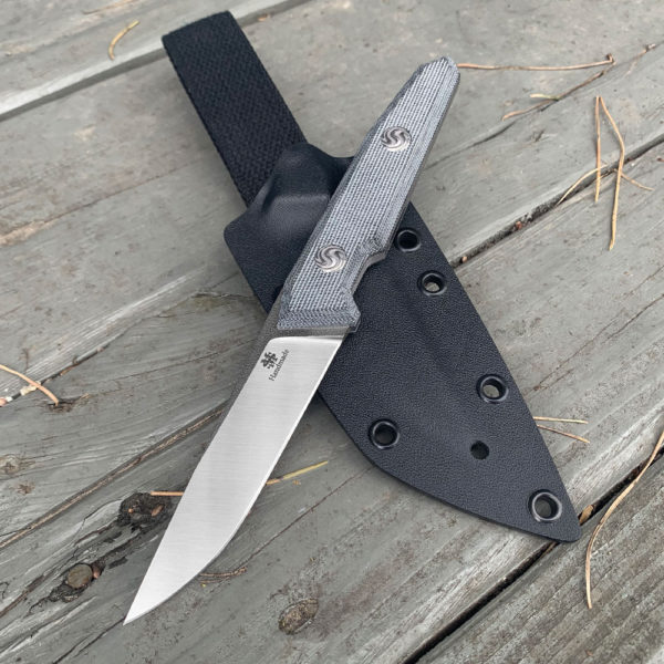 MS Knives Liberty Knife Black Canvas Micarta | Modestas Skirmantas is made of premium steel: Elmax, has a micarta handle, and comes with nice hand made black kydex sheath.