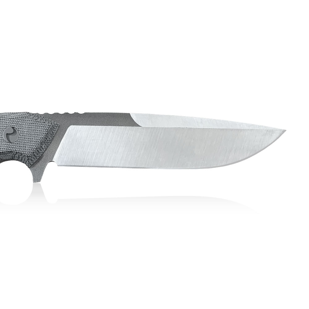 The blade with a ridge of 4 mm thick, made in a drop point style, with a flat cut, ensures smooth cutting and performing various tasks (piercing, planing, preparing meals, etc.). The knife has a handguard, which, together with a finger undercut, protects against slipping of the hand on the cutting edge during work and improves the grip. On the top of the blade we will find jimping.