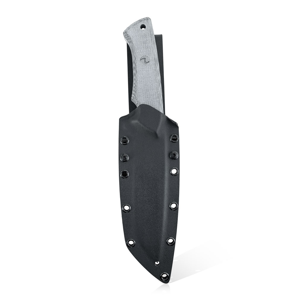 MS Knives Shark Knife Black Canvas Micarta | Modestas Skirmantas is made of premium steel: Elmax, has a micarta handle, and a nicely fitted kydex holster is used to store it.