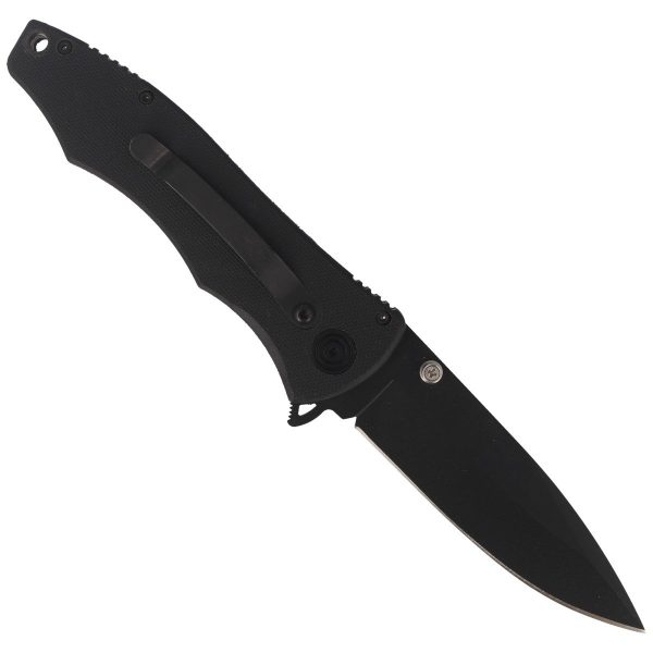Głownia PANZER-10N ma profil Drop Point o grubości 3.6 mm i jest utwardzana w przedziale 57-61 HRC. Wykonana jest z wytrzymałej molibdenowo-wanadowej stali nierdzewnej X60CrMoV15, co gwarantuje doskonałą trwałość. Ostrze jest wyprowadzone szlifem wklęsłym (Hollow grind), co zapewnia doskonałe właściwości tnące. Klinga jest pokryta czarną, odporną na zarysowania, matową nierefleksyjną powłoką PTFE. Nóż wyposażony jest w obustronne kołki Thumb Stud oraz Flipper, umożliwiające szybkie otwarcie. Do zabezpieczenia służy blokada typu Liner-Lock. Stalowy jelec u nasady głowni chroni dłoń przed zsunięciem się podczas pracy.