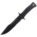 Nóż Muela Tactical Rubber Handle 180 mm (MIRAGE-18N) pochodzi z serii MIRAGE, jednej z najbardziej rozpoznawalnych pośród noży hiszpańskiej firmy Muela. Wyjątkowo wszechstronny z masywną klingą zniesie bez uszczerbku każdą pracę w każdych warunkach. Doskonały nóż survivalowy, na biwak sprawdzi się jako nóż taktyczny, myśliwski.