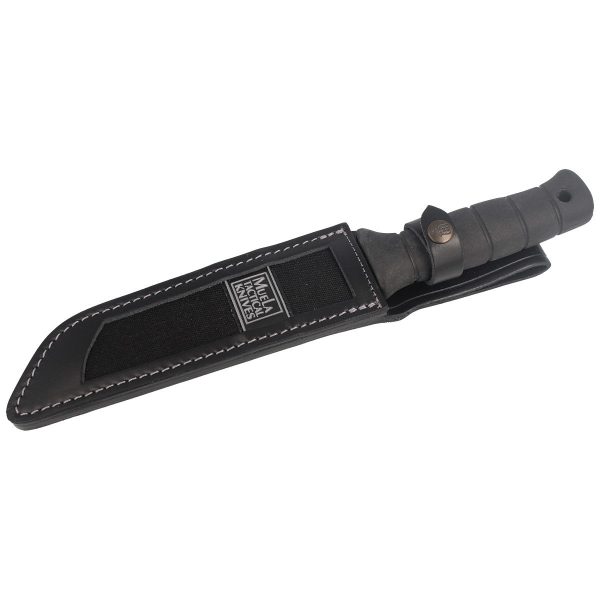 Etui w kolorze czarnym, zapinane na zatrzask, umożliwia bezpieczne przenoszenie noża. Wykonane ze skóry oraz wodoodpornego nylonu. Brzegi pochwy ozdobione ozdobnÄ… niciÄ…, a na skórze widnieje tÅ‚oczony napis “MUELA TACTICAL KNIVES”. Pochwa posiada mocowanie do pasa lub oporzÄ…dzenia, umożliwiajÄ…ce noszenie noża w pozycji pionowej. Elegancki i funkcjonalny nóż, gotowy na każde wyzwanie.