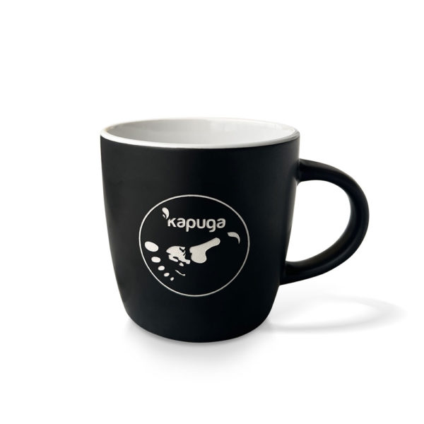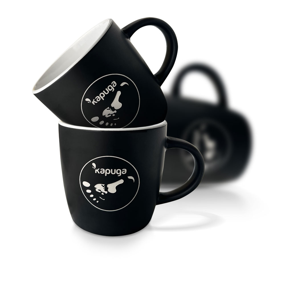 Mug is made of porcelain stoneware, a relative of porcelain. Porcelite is quite hard and is characterized by significant impact resistance. The mug has a matte black finish on the outside and a white finish on the inside.