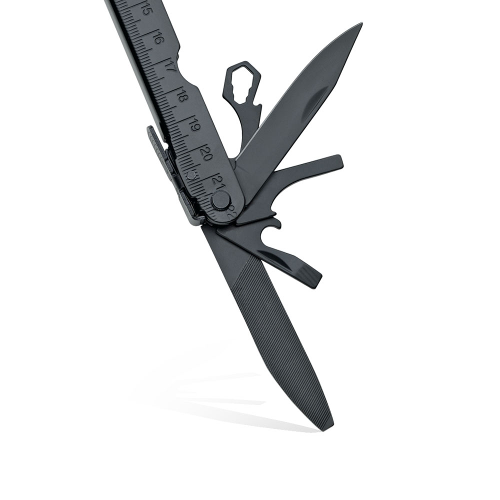 - Metric ruler (after fully unfolding the multitool, it gives a measuring range up to 22.5 cm).