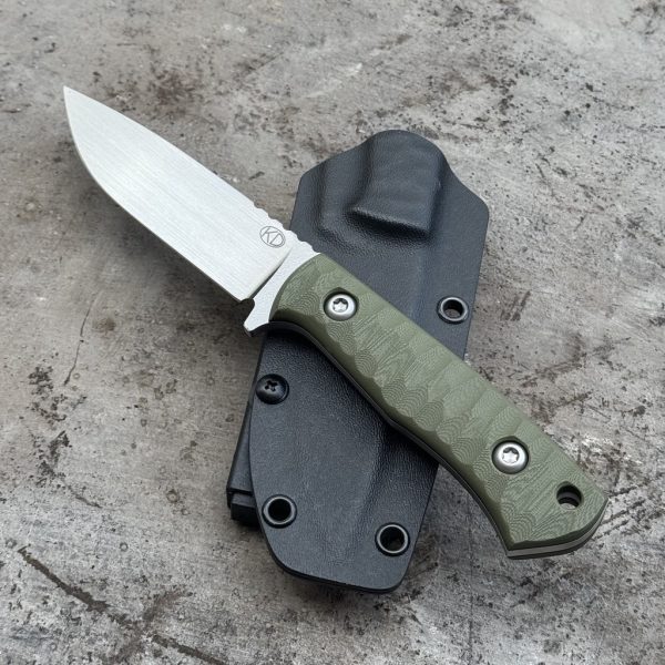 KD Knives Kamil Dlugosz Traveler “Waypoint” | Satin Elmax OD Green & Black G10 Black Kydex