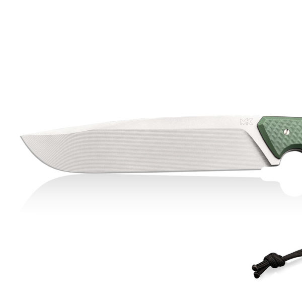 MK Knives & Tools Crowbar “Three Colors #3” Knife has a premium Elmax steel blade with an innovative grind in the form of grooves on the blade and a glassblasted finish. The handle is made of durable green G10 composite (with black liners). The set includes a kydex holster (black color with colorfull additions) and an additional kydex buckle for attaching the knife to MOLLE solutions.