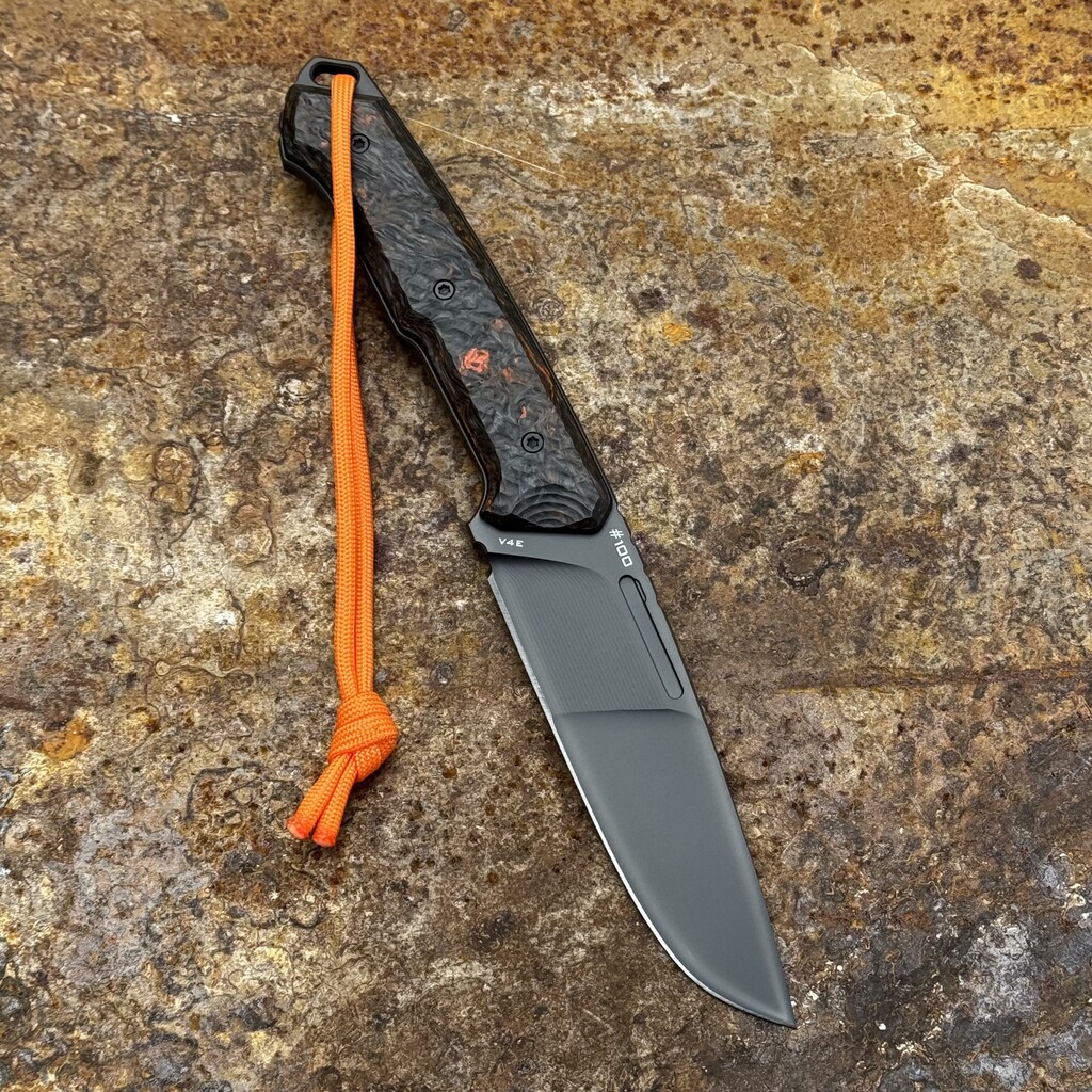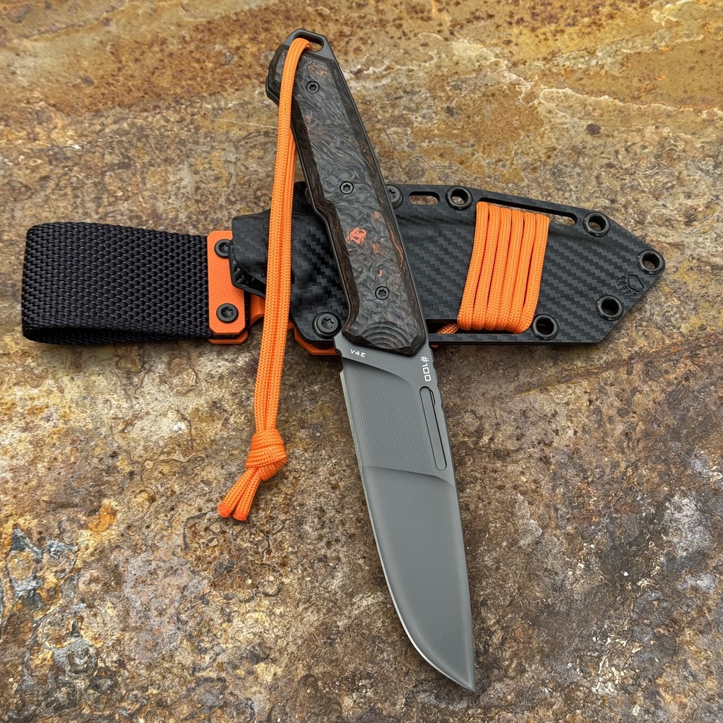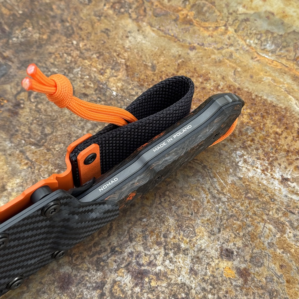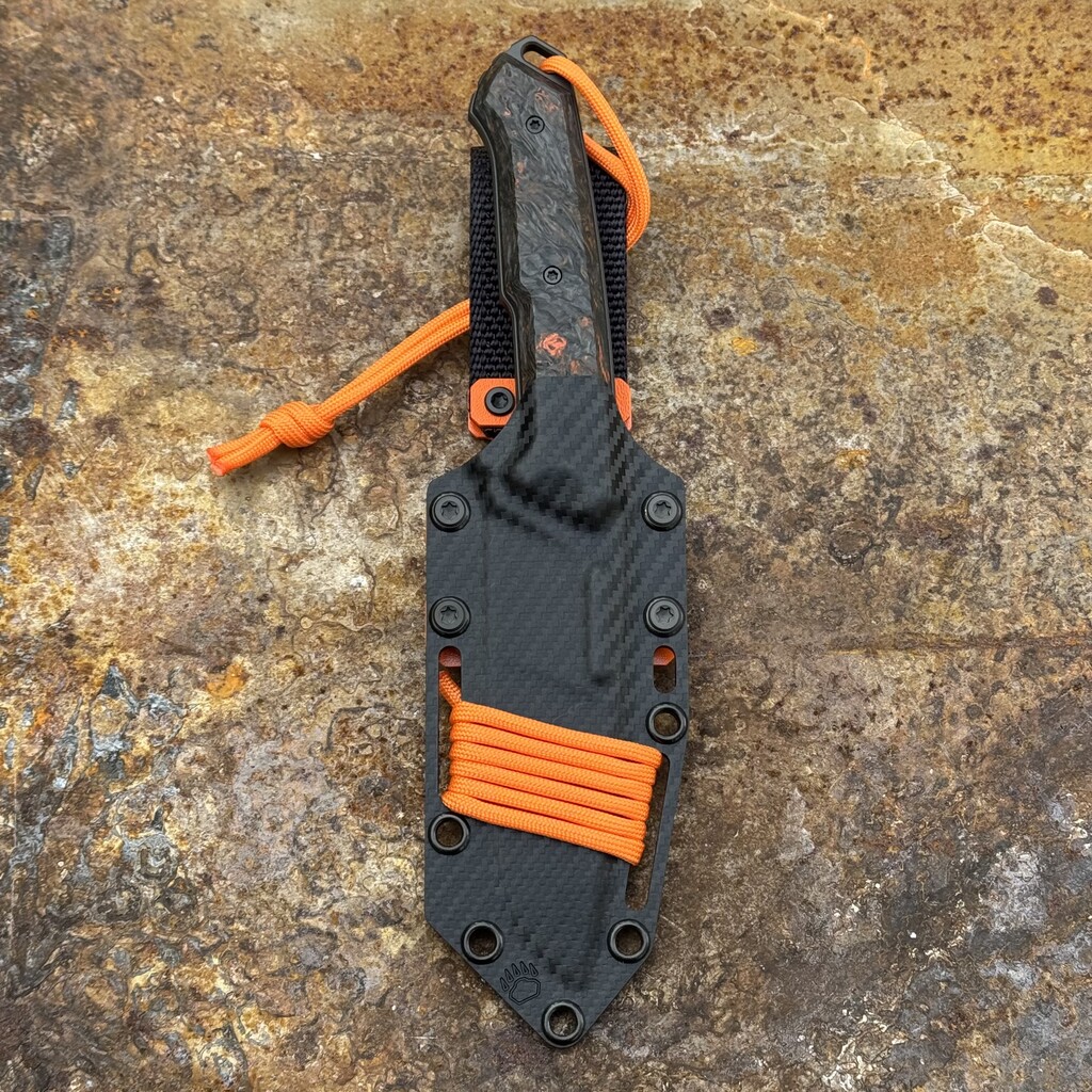 - Handle: FatCarbon Dark Matter Orange & Black G10 liners
