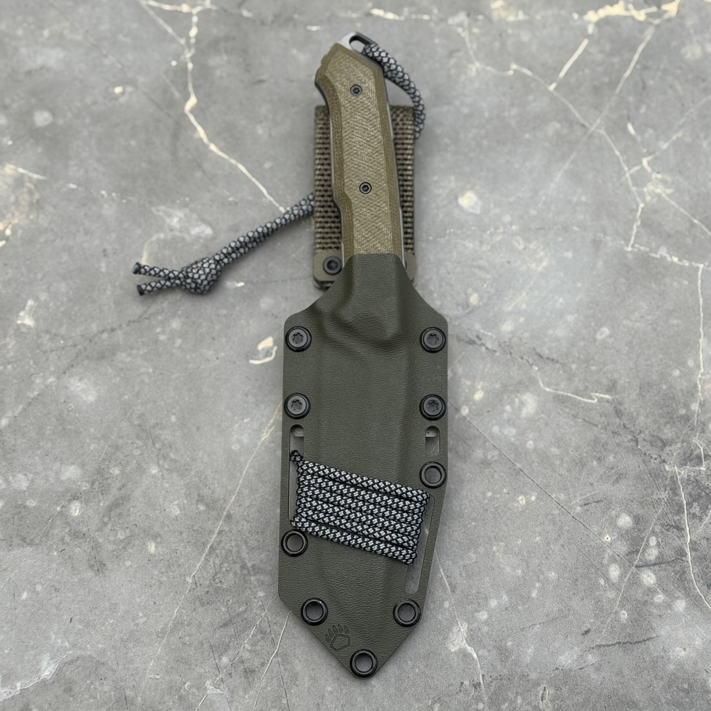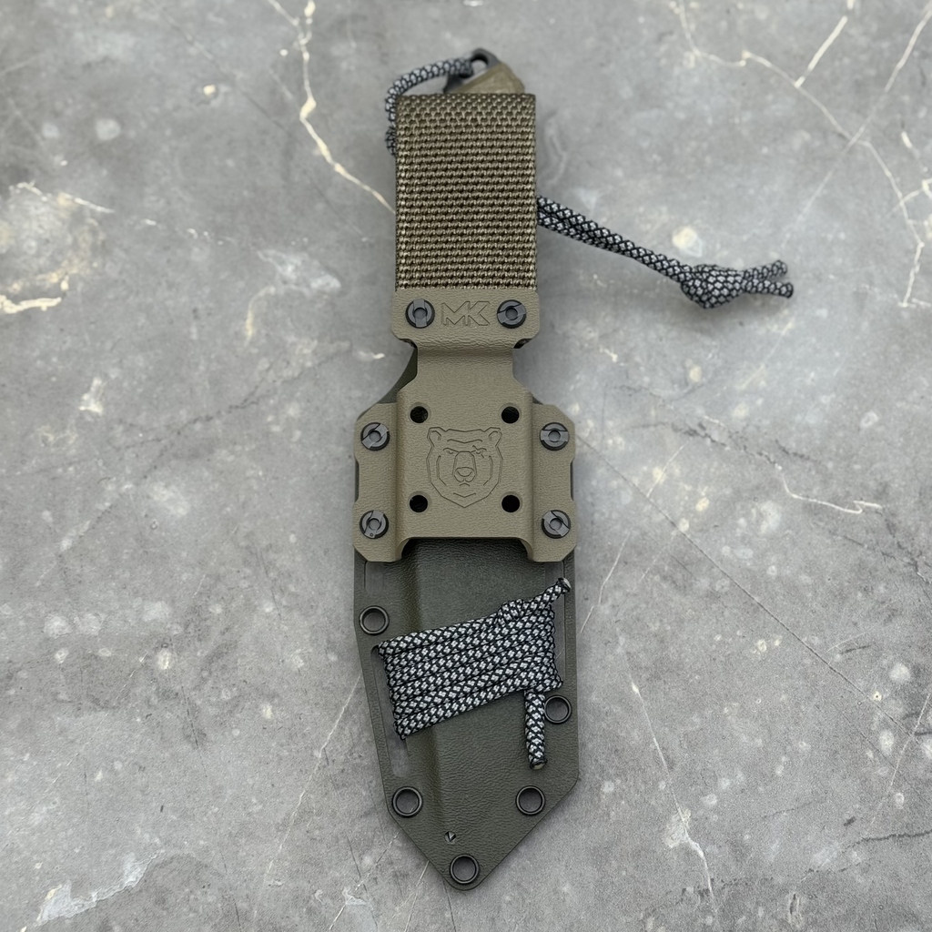 - Sheath: OD green Kydex with light olive additions (FDE Fall)