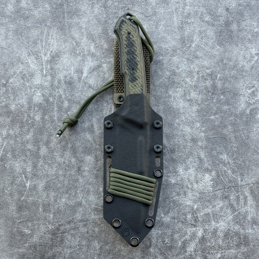 - Handle: Olive/black Canvas Micarta & Black G10 liners