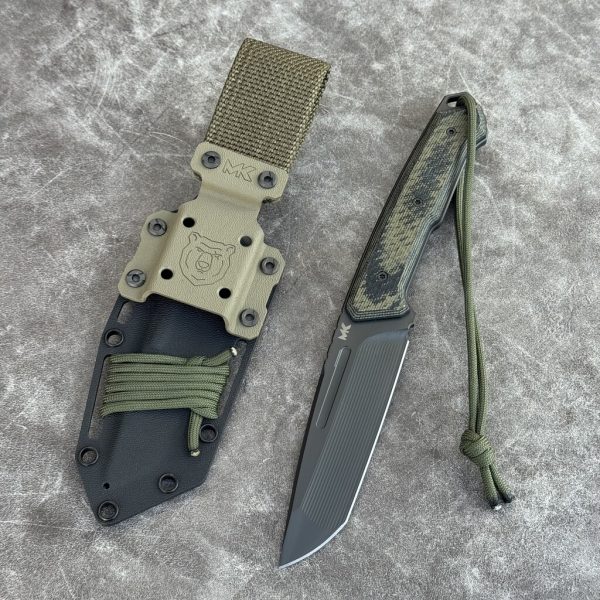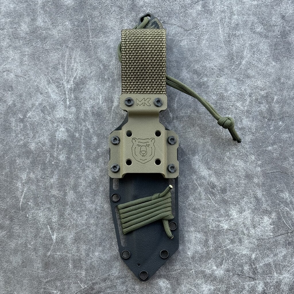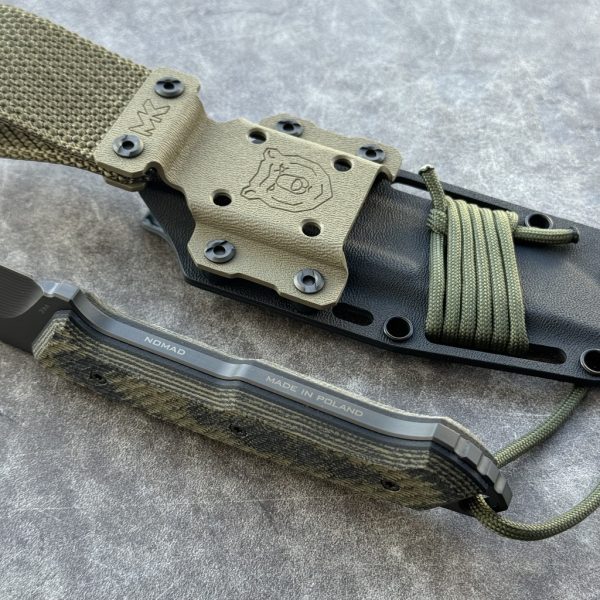 Nóż MK Knives & Tools Nomad Tanto “Fear The Bear” DLC Vanadis 4 Extra Olive/Black Micarta & Black G10 Black Kydex