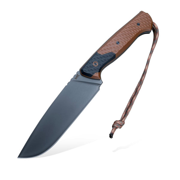 The presented Rambler is made of one piece of Elmax steel (chrome-vanadium-molybdenum powder steel). It is a full-tang knife, where the handle claddings are attached to the steel structure that runs along the entire length and width of the knife. Elmax is one of the few steels available on the market in the absolute top quality of materials used in the production of premium knives. Knives made of it are extremely resistant to overload, stay sharp for a long time and have excellent anti-corrosion properties.