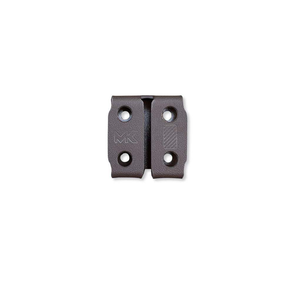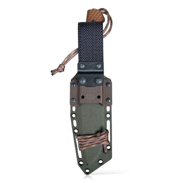 We attach the holster to the belt with the use of kydex buckles, which can also be attached to MOLLE solutions. The initial mounting of the buckles allows the entire belt to be mounted vertically. However, it is possible to change the position of the buckles in a way that allows for more discreet horizontal installation (along the belt, on the back or at the front on the hip belt). Then just unscrew the buckles and change their arrangement. Strongly stable fastening (if we prefer it) can be obtained additionally by tying the holster through the through holes in it. Of course, you can use the paracord supply that the holster is wrapped in (its color corresponds to the section at the knife).