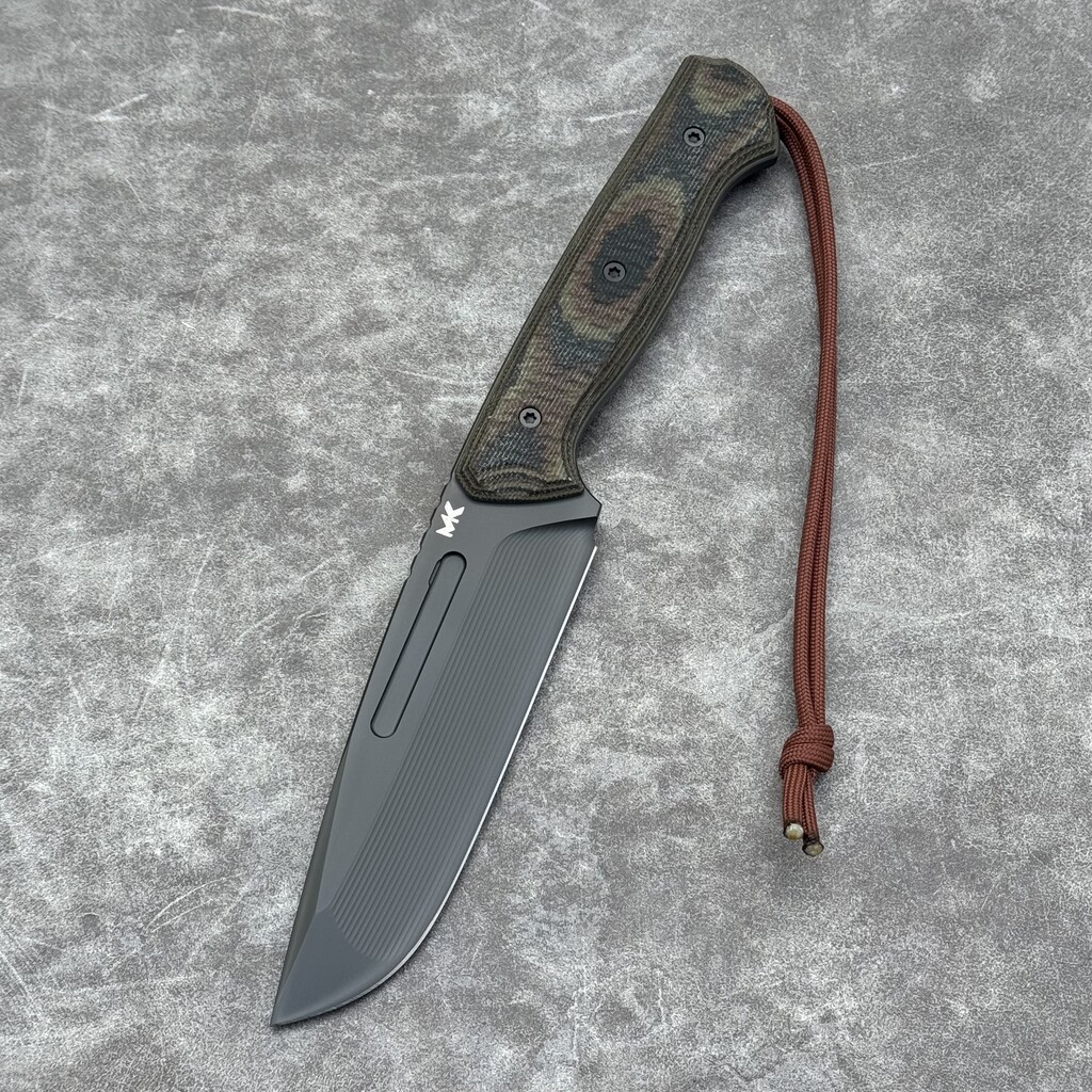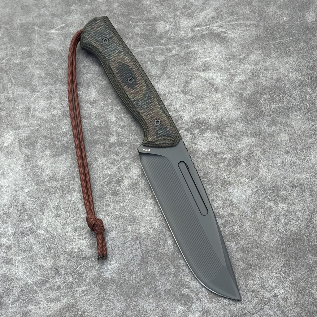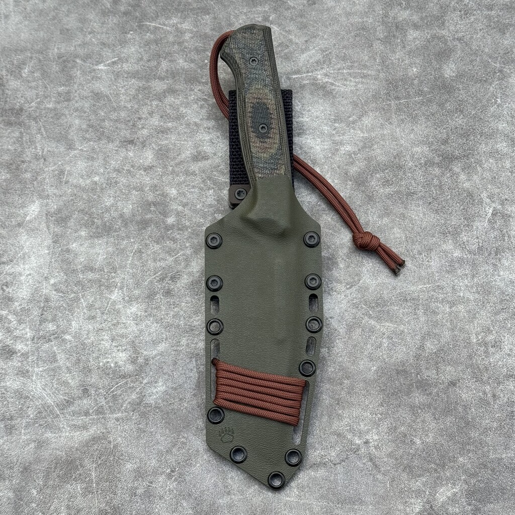 - Handle: Camo Canvas Micarta + olive G10 liners