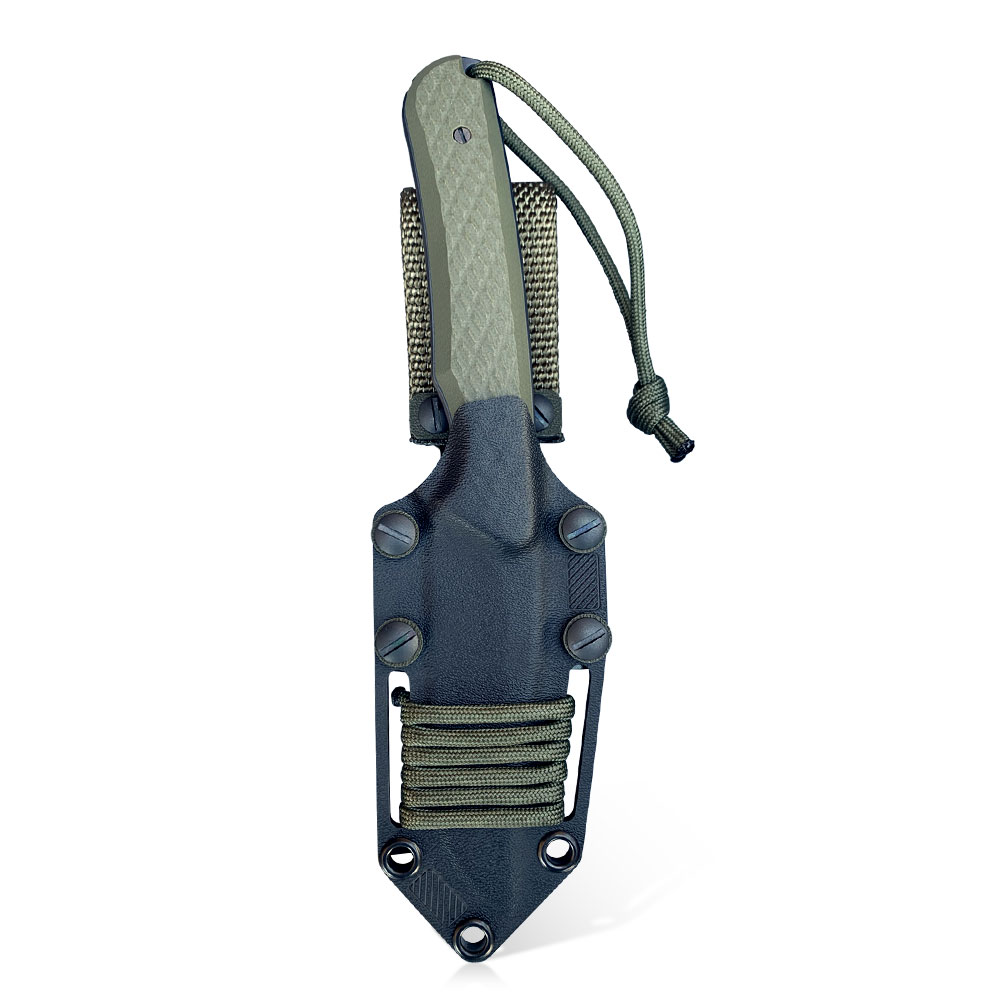 The knife has a holster made of hand-formed kydex material, which is characterized by high impact and scratch resistance, characterized by low moisture absorption, resistant to various weather conditions and many chemicals.