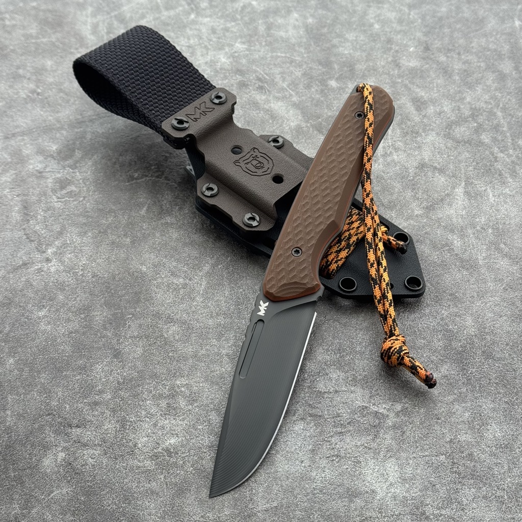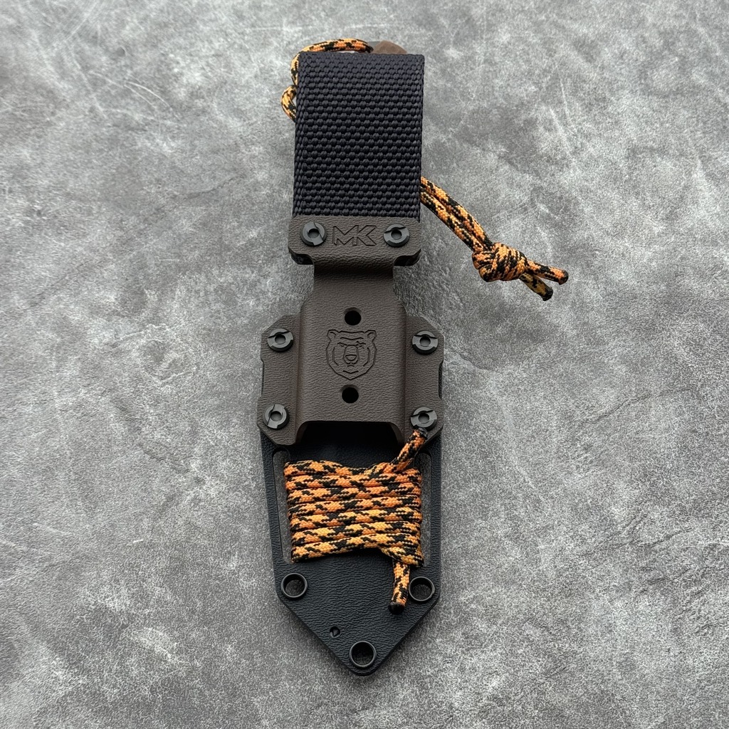 Seria ‘Fear The Bear’ stworzona przez MK Knives & Tools z potrzeby okazania szacunku dla dzikiej przyrody. Symbol niedźwiedziej głowy na pochwie to nie tylko ozdoba – to znak, by pamiętać, że ludzie są gośćmi w świecie natury. Lasy, góry i równiny mają swoich mieszkańców. Tak jak ślady łap na ziemi, tak i na nożach MK z tej serii znaleźć można odcisk łapy niedźwiedzia – symbol odpowiedzialnej obecności w terenie.