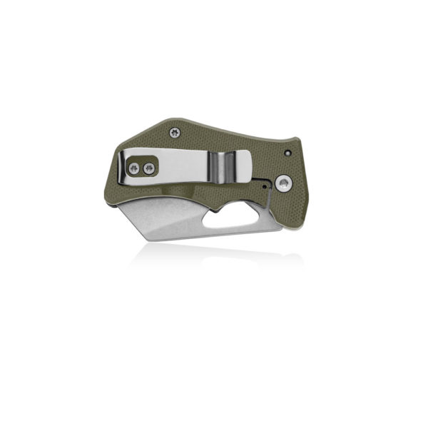Black FOX Kit BF-752 OD Folding Knife OD Green G10 has a 440C stainless steel blade and a handle made of steel and green G10 composite (steel elements have a stone wash finish). We open the knife blade with one hand using the hole in the blade or with both hands. The open blade is secured against closing by a frame lock. The knife is equipped with a steel carrying clip.