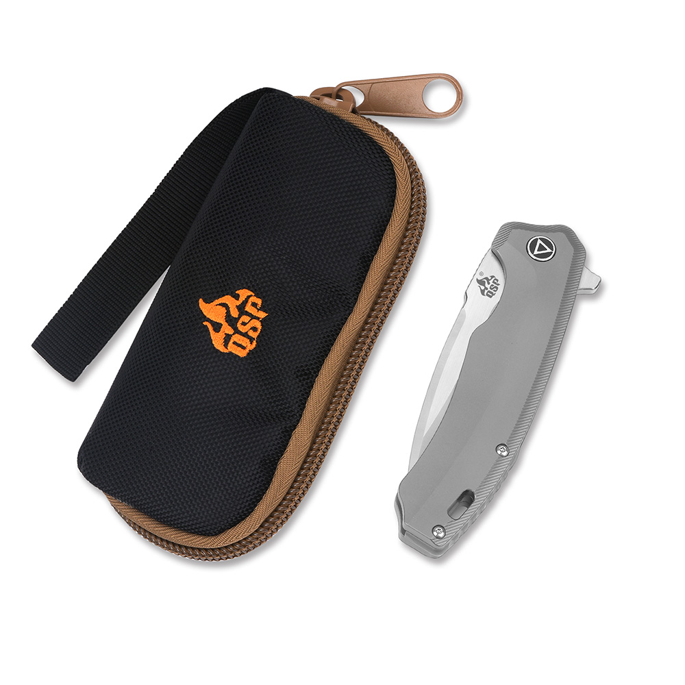 The handle is entirely made of lightweight and extremely durable titanium. It is a hard metal, resistant to impacts and mechanical damage, used in knives from the highest quality shelf. The knife was equipped with a titanium clip, enabling stable carrying in a pocket, fixing to the backpack, organizer etc. An  hole over the clip allows additional threading, paracord etc. Both the clip and the opening are elements that serve as protection against possible loss of the knife.