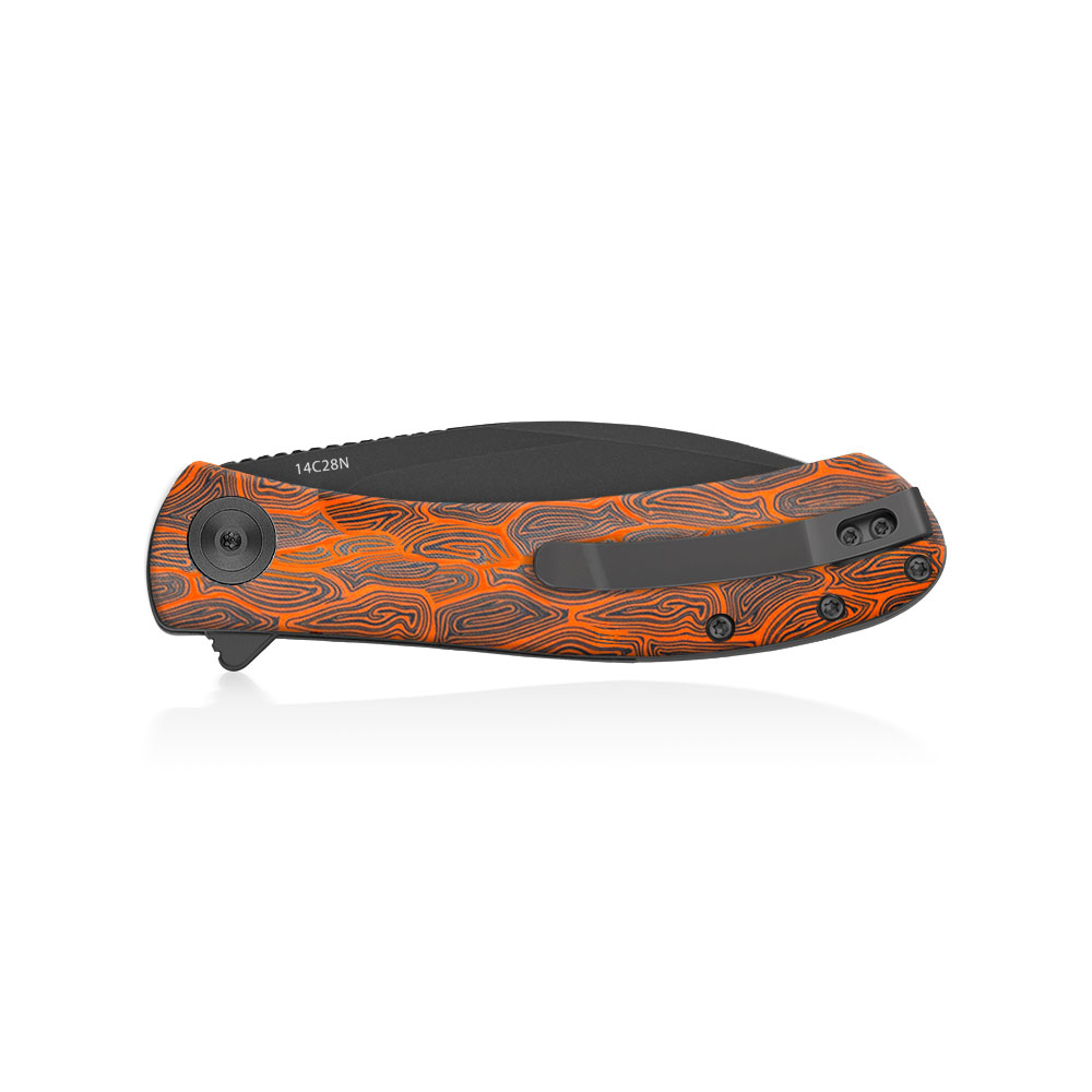 **STAINLESS STEEL BLADE**: 14C28N is a Swedish stainless steel developed by Sandvik specifically for knife production. It offers an excellent balance of edge retention, corrosion resistance, and ease of sharpening—making it ideal for EDC, outdoor, and kitchen knives. The addition of nitrogen increases hardness and overall performance. Compared to D2, 14C28N is more corrosion-resistant and easier to sharpen, while D2 generally holds an edge slightly longer but is much more prone to rust.