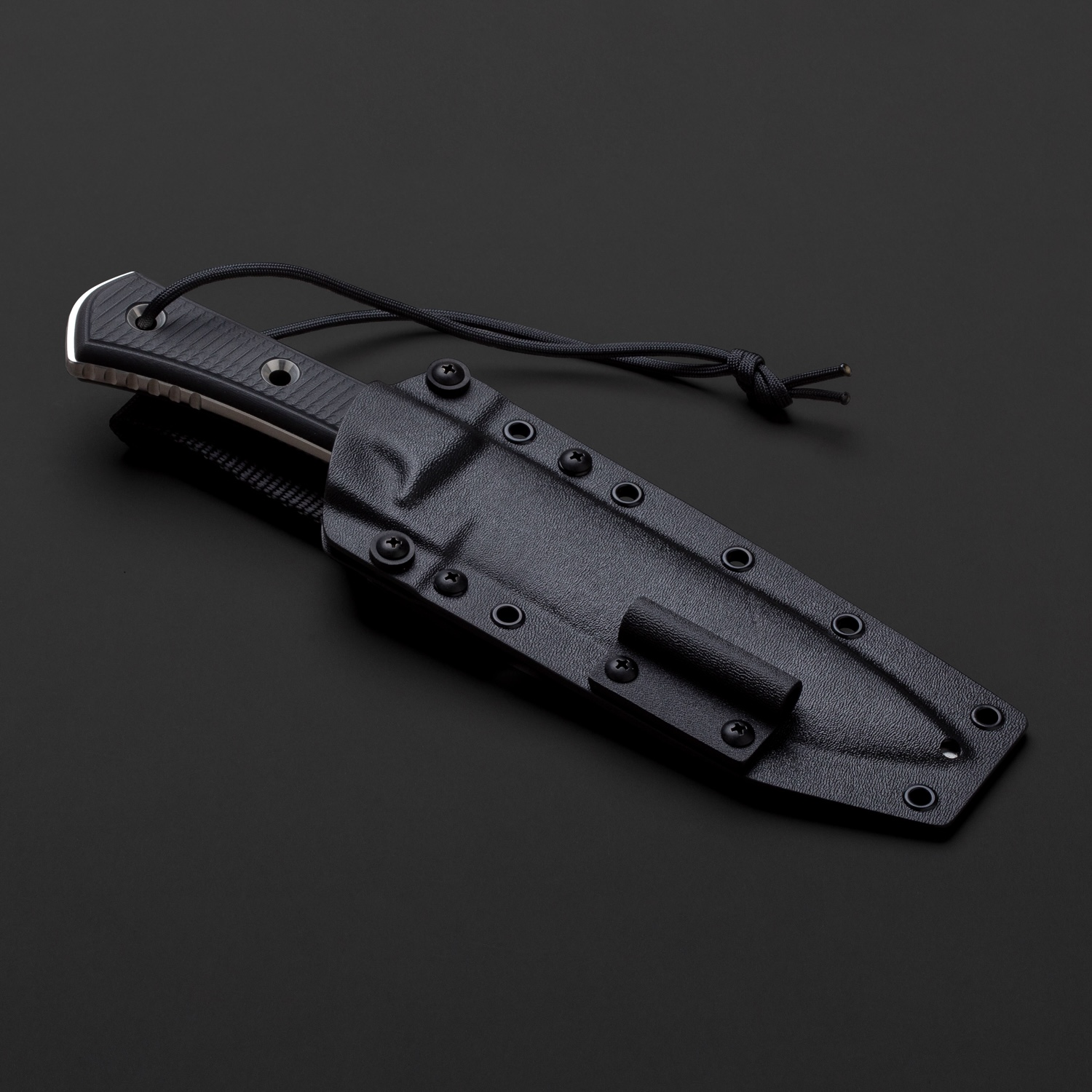 The knife comes with a hand-shaped Kydex sheath, fitted with a heavy-duty nylon belt loop. This setup provides flexibility and comfort — the sheath moves naturally with the body, without pressure or restriction.