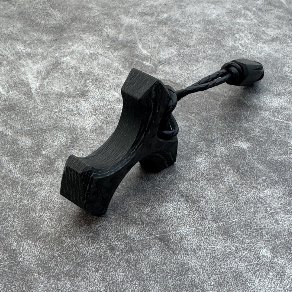 • Regular carbon fiber bead designed by Ostap Hel, along with a section of leather braid allowing attachment to Mjolnir or any other chosen element.