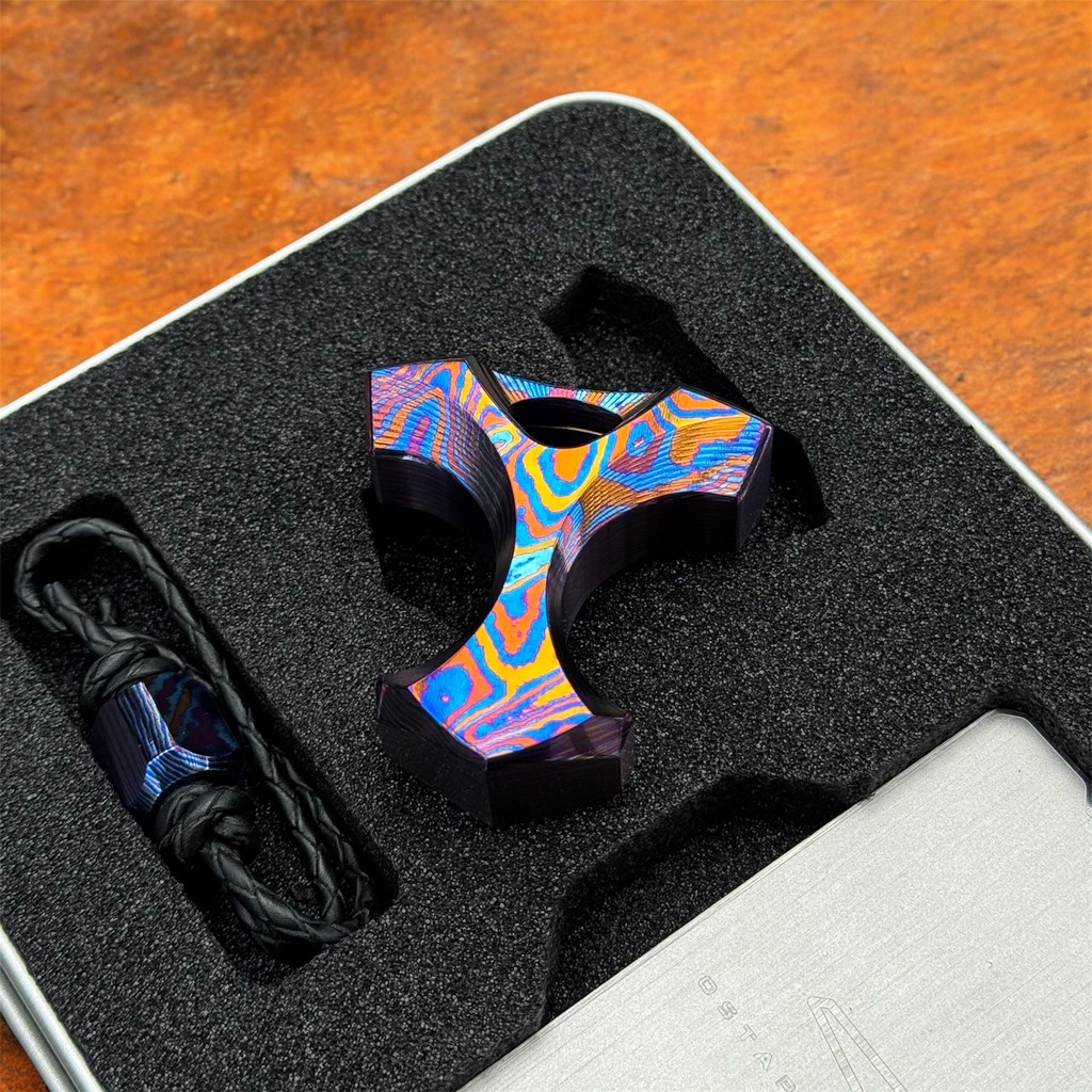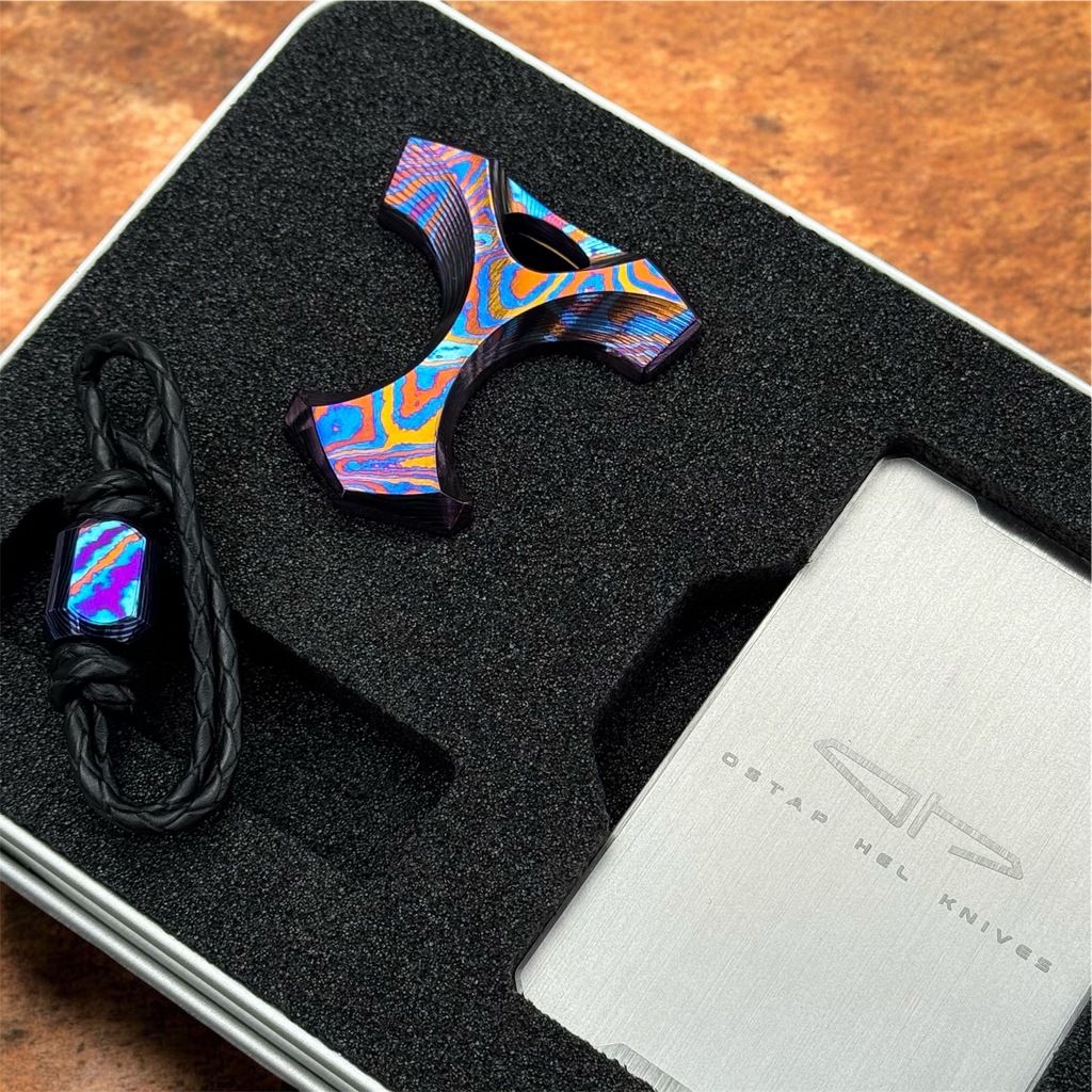 The creator behind the design is Ostap Hel — recognized for precision and innovation in the EDC world. Known for perfect symmetry and controlled geometry, here he becomes a metal-jewelry artist who shapes titanium instead of gemstones.