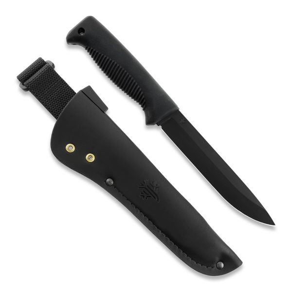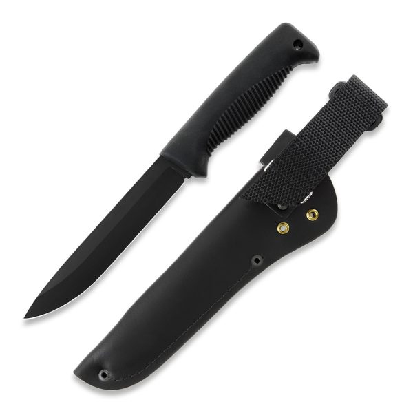 Peltonen Knives M95 Ranger Puukko Sissipuukko FJP001 Black PTFE 80CrV2 Black TPE Handle Leather Black Sheath