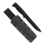 **The presented version of the knife features a blade with a black Teflon coating, black handle and black Kydex sheath.