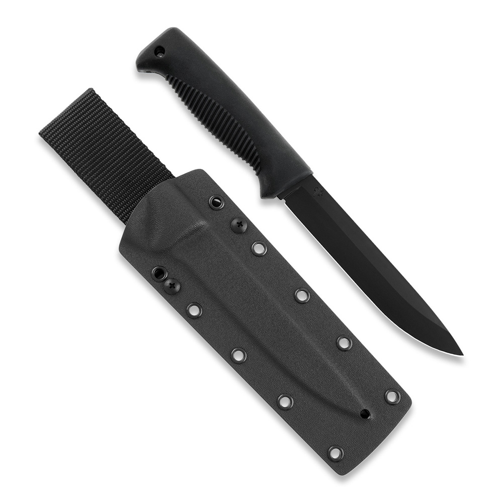 Peltonen Knives M95 Ranger Puukko Sissipuukko FJP007 Black PTFE 80CrV2 Black TPE Handle Black Kydex Sheath