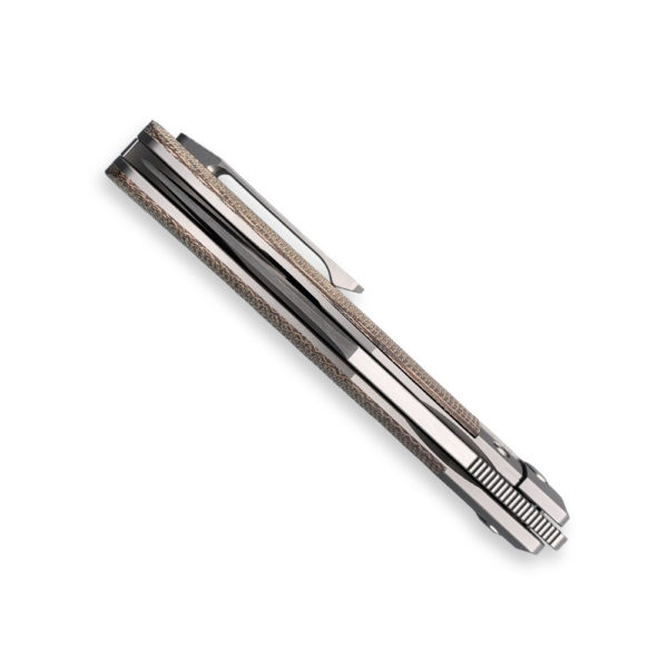 The Tip-Up style carrying clip located at the end of the knife handle allows the closed blade to be carried upside down. The clip is made of titanium.