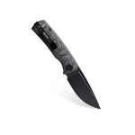 Prezentowany nóż posiada wydajne ostrze typu drop point ze stali 14C28N z jasnym wykończeniem (sand blasted), okładkami rękojeści z klasycznego włókna węglowego. Designu noża dopełnia backspacer z G10 oraz tytanowy klips mocujący. Otwieranie noża następuję za sprawą wystającej górnej płetwy (front flipper) a ostrze blokuje blokada typu liner lock.