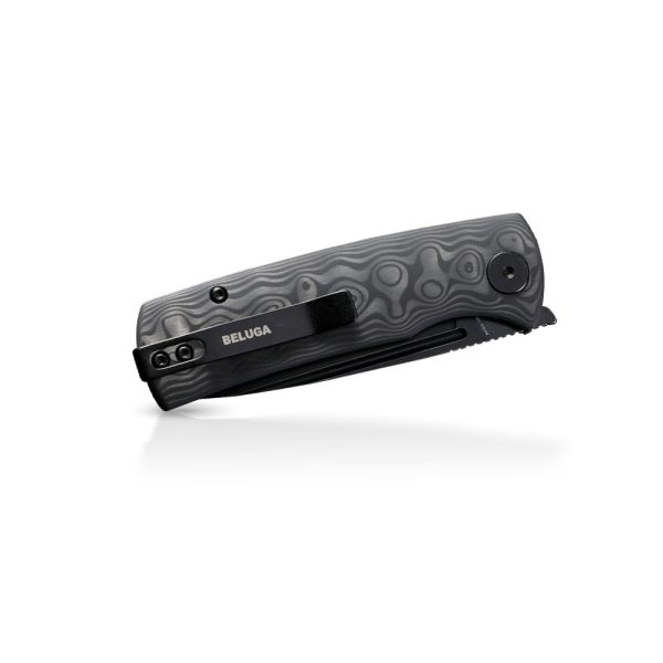 Bieluga z dość szerokim ostrzem i umiejscowionym w górnej części ostrza zbroczem a przede wszystkim otwieraniem w formie górnej płetwy (front flipper) wyróżnia się pośród innych modeli Petrified Fish. Robocze ostrze typu drop point o bardzo uniwersalnym zastosowaniu oraz szwedzka stal Sandvik 14C28N, będąca trzonem konstrukcji uwydatnia walory użytkowe noża. Beluga to z pewnością interesujące narzędzie na użytek codzienny.