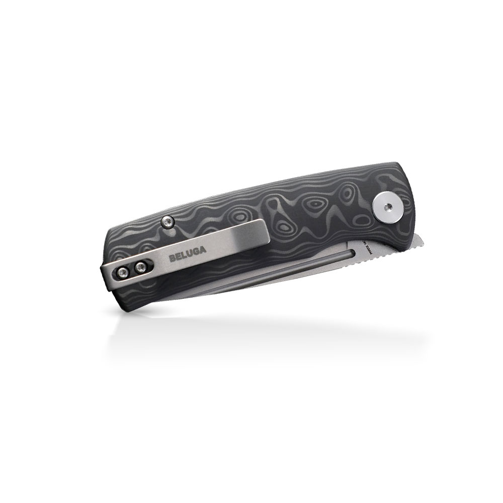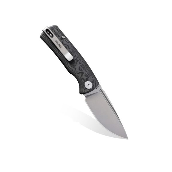 The Beluga, with its wide blade, a fuller (groove) placed in the upper part of the blade, and most importantly, its front flipper opening mechanism, stands out among other Petrified Fish models. Its drop point blade, known for its versatility, and Swedish Sandvik 14C28N steel, which serves as the foundation of the knife’s construction, highlight its utility. The Beluga is undoubtedly an interesting tool for everyday use.