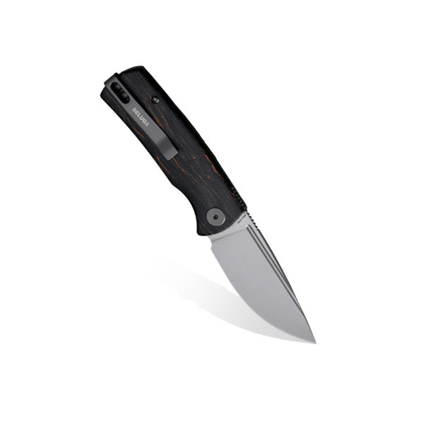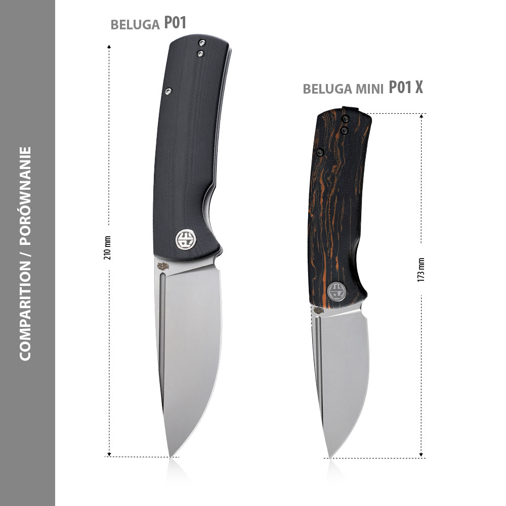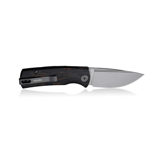 Beluga with a fairly wide blade and a groove located in the upper part of the blade (fuller) and, above all, opening in the form of an front flipper, stands out among other Petrified Fish models. A working drop point blade with a very universal application and Swedish Sandvik 14C28N steel, which is the core of the structure, enhances the utility values of the knife. Beluga is certainly an interesting tool for everyday use, but also a great support for outdoor trips.