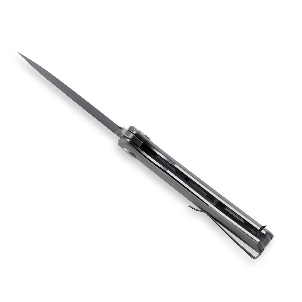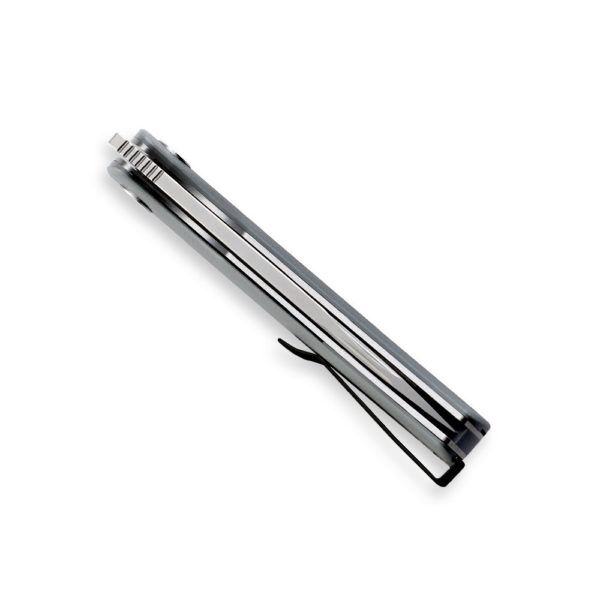 Petrified Fish Beluga PF-P01 Grey Folding Knife has an efficient drop point blade made of K110 steel. The knife handle is made of grey G10 composite. The design of the knife is completed with a G10 backspacer and a steel fastening clip in a black titanium coating. The opening of the knife occurs due to the protruding front flipper and the blade is blocked by a liner lock.