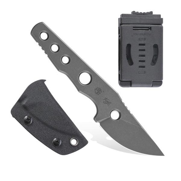 W zestawie z nożem otrzymujemy kaburę z tworzywa kydex. Kydex cechuje się wysoką odpornością na uderzenia, zarysowania, charakteryzuje się niską chłonnością wilgoci, odpornością na różnorodne warunki atmosferyczne oraz wiele środków chemicznych. Kabury z niego wykonane użytkujemy wygodnie i długotrwale. Dla ułatwienia w wyjmowaniu noża, zaprojektowana została podporę na kciuk, dzięki której nóż możemy wyjąć w sposób kontrolowany i bezpieczny.