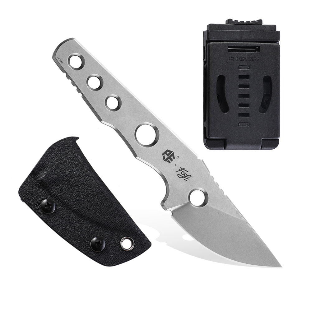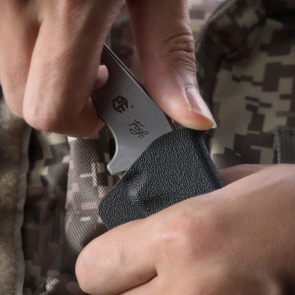 W zestawie z nożem otrzymujemy kaburę z tworzywa kydex. Kydex cechuje się wysoką odpornością na uderzenia, zarysowania, charakteryzuje się niską chłonnością wilgoci, odpornością na różnorodne warunki atmosferyczne oraz wiele środków chemicznych. Kabury z niego wykonane użytkujemy wygodnie i długotrwale. Dla ułatwienia w wyjmowaniu noża, zaprojektowana została podporę na kciuk, dzięki której nóż możemy wyjąć w sposób kontrolowany i bezpieczny.