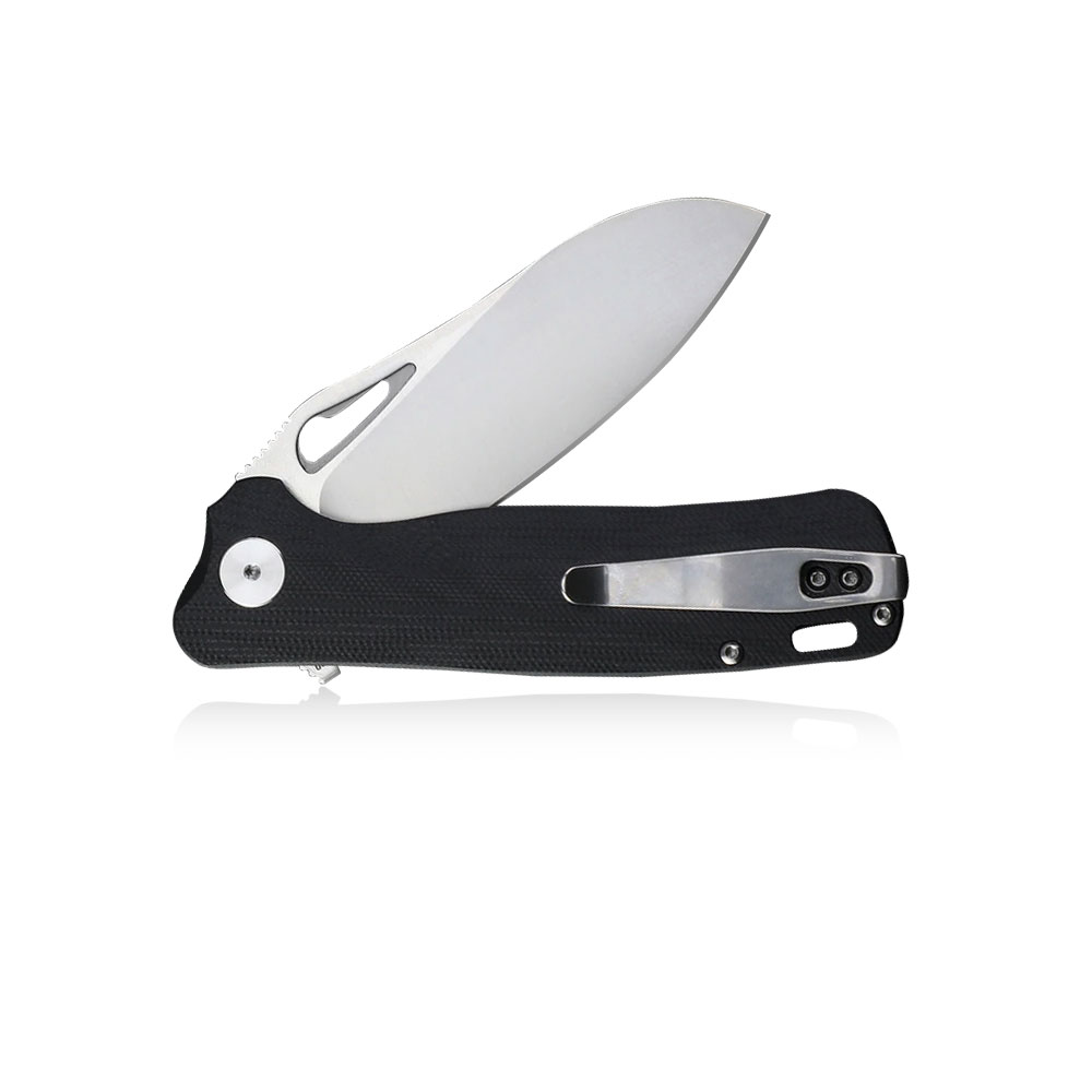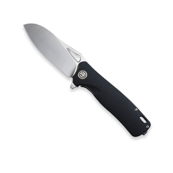 Petrified Fish Bunta PF-868 DS Black Folding Knife Folder has an efficient blade made of D2 steel, known for its cutting efficiency and easy to sharpen and maintain. The handle of the knife is made of black G10. The opening of the knife occurs due to the protruding flipper or the hole in the blade and the blade is blocked by a liner lock.