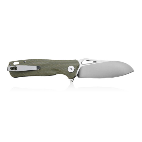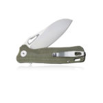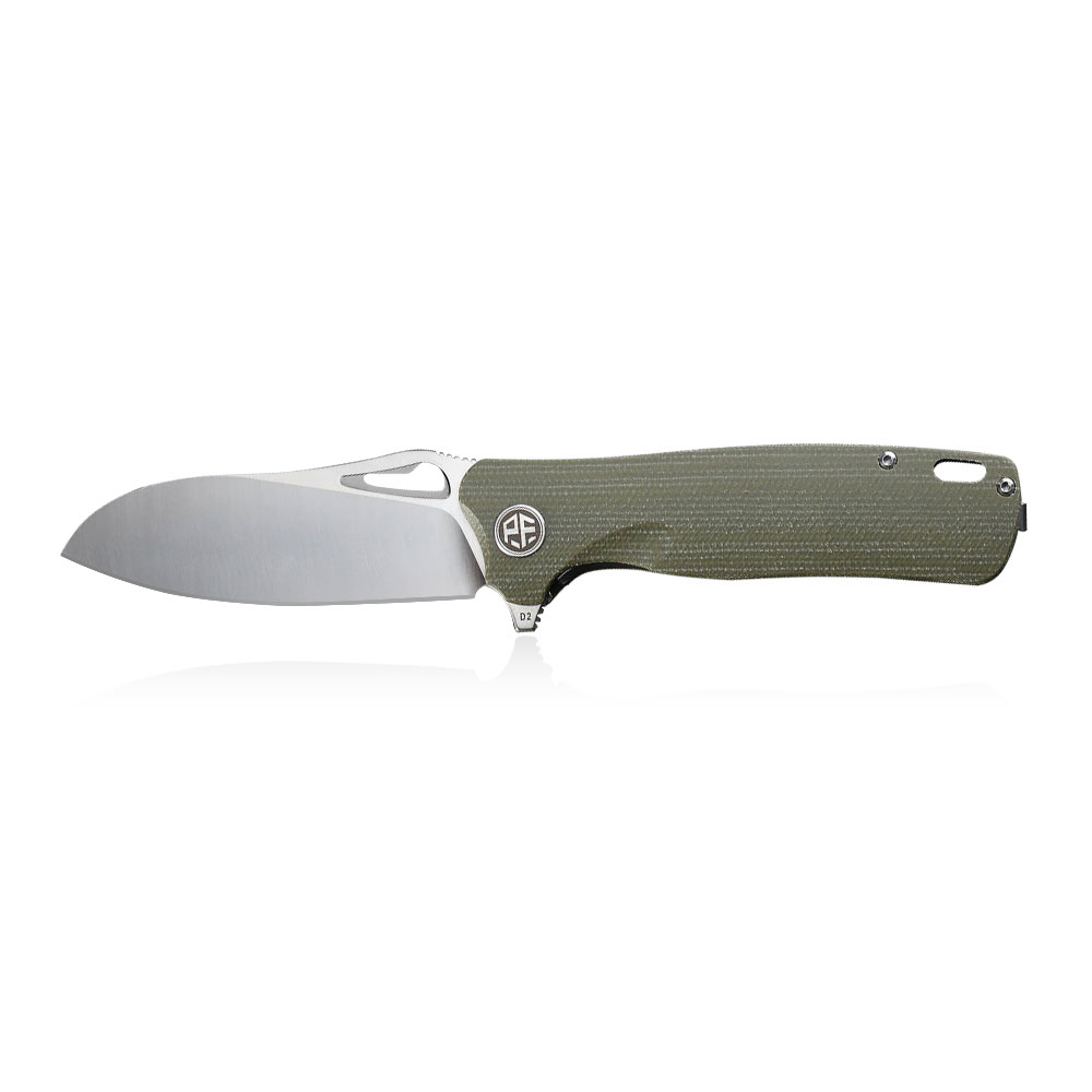 Petrified Fish Bunta PF-868 GRMS Green Micarta Folding Knife Folder has an efficient blade made of D2 steel, known for its cutting efficiency and easy to sharpen and maintain. The handle of the knife is made of green micarta. The opening of the knife occurs due to the protruding flipper or the hole in the blade and the blade is blocked by a liner lock.