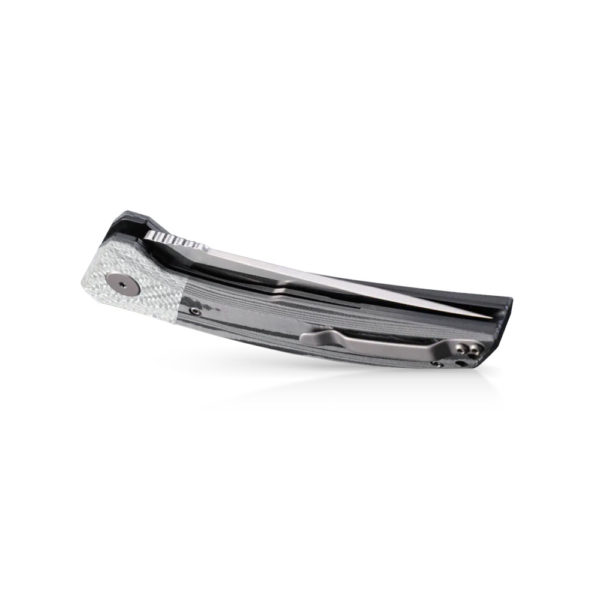 - Handle: steel liners, carbon fiber, steel carrying clip (Tip-Up)