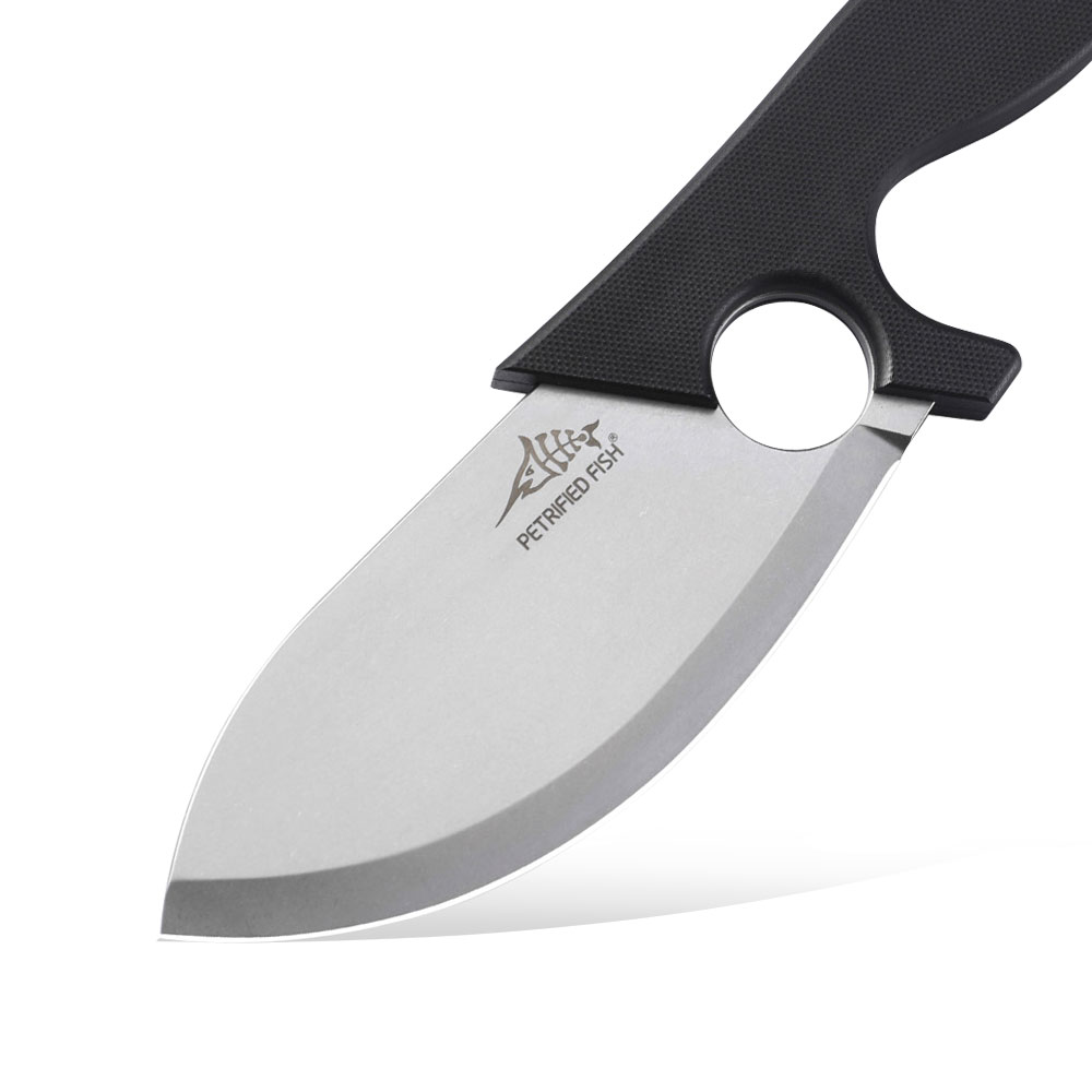 Petrified Fish EEL PFH01 DW Stonewashed 9CR18MOV Black G10 Handle Black G10 Sheath